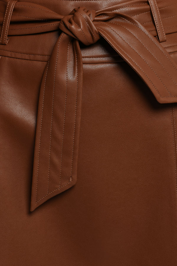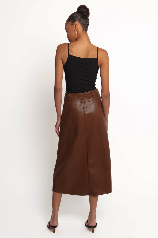 Adaline Faux Leather Midi Skirt - Brown