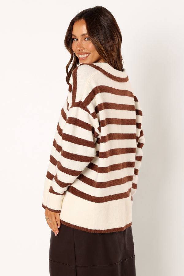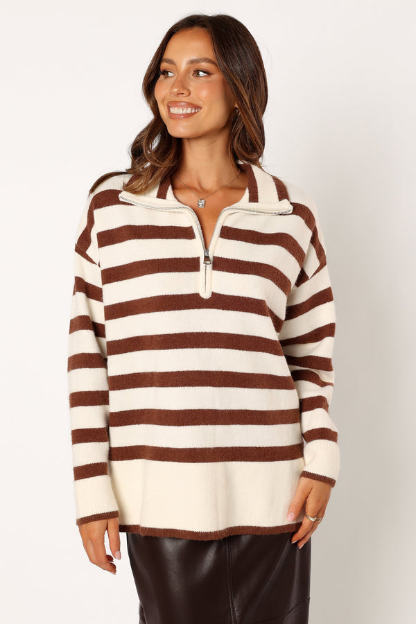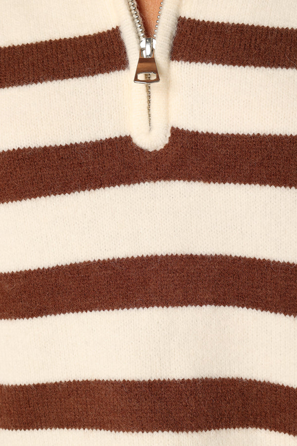 Artemis Oversized Quarter Zip Knit Sweater - Beige Brown