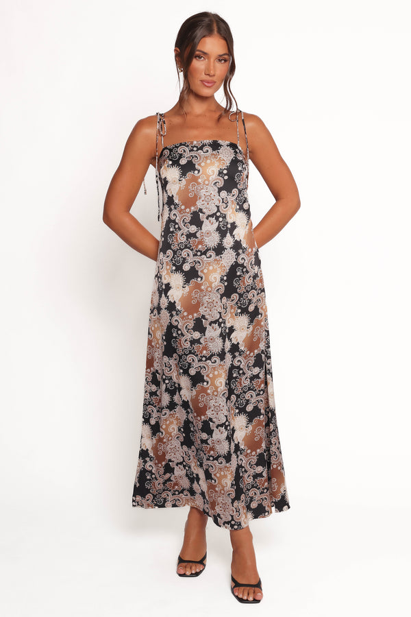 Featuring an elegant maxi length and a striking paisley print, this dress is designed to turn heads. The square neckline and thin tie-close straps lend a modern, minimalist vibe, while the elasticised back ensures a comfortable fit for occasion.