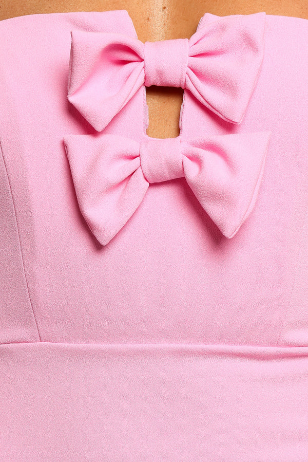 Turn heads with the effortlessly chic Briggs Midi Dress in Pink. This strapless beauty features a sleek straight neckline, complemented by a statement-making cut-out and bow detail on the bust for a modern, feminine twist.