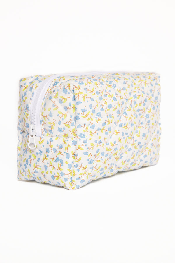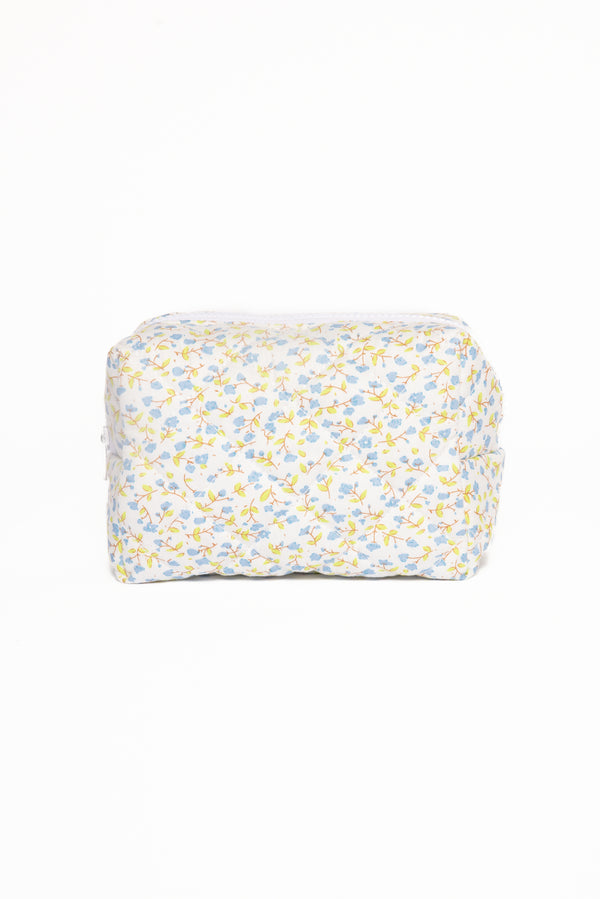 Featuring an open top with a secure zip closure, this bag is as functional as it is stylish. The delicate floral print brings a fresh, modern twist to your beauty essentials, making it the perfect accessory for your vanity or travel bag.
