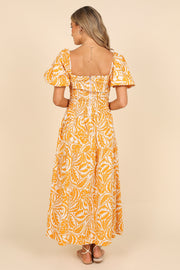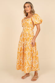 Gaylia Puff Sleeve Midi Dress - White/Orange