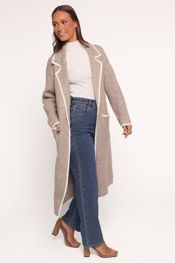 Katia Contrast Trim Coatigan - Beige