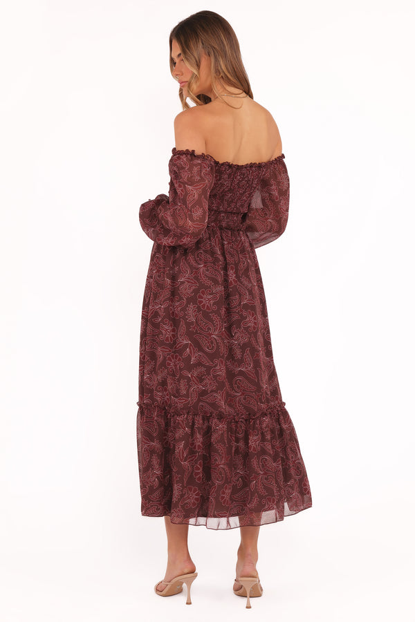 Keziah Long Sleeve Maxi Dress - Burgundy Paisley