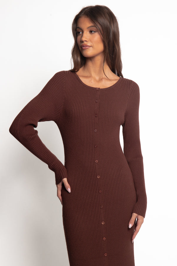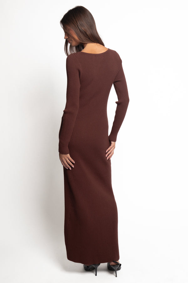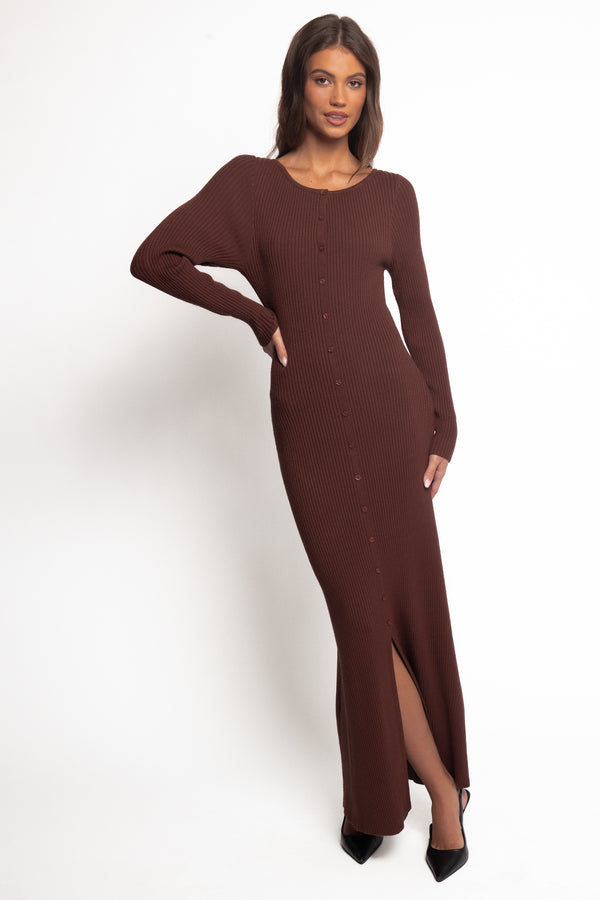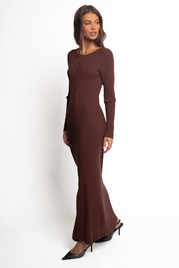 Marshall Button Through Knit Maxi Dress - Chocolate