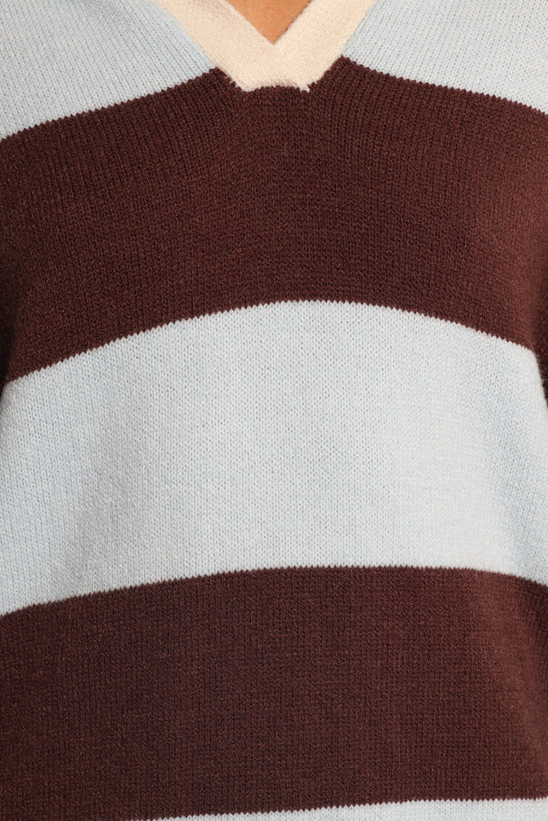 Mikaela Rugby Stripe Knit Sweater - Brown/Blue Stripe