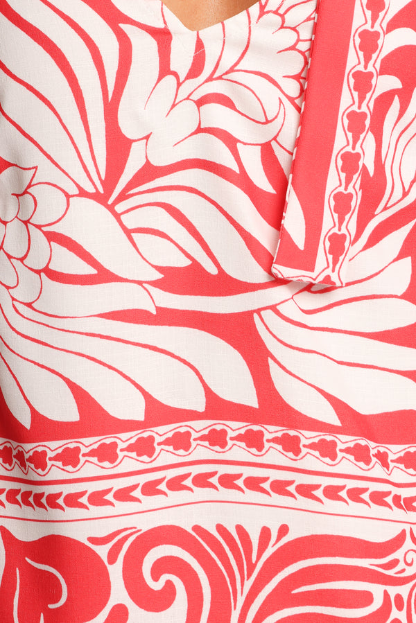 Turn heads in the Nicoletta Mini Dress - Red, featuring a bold floral print and a chic halter neckline with a playful front tie closure. The elasticized back offers a comfortable fit, while the mini length keeps it effortlessly trendy. Perfect for staying stylish at every event.