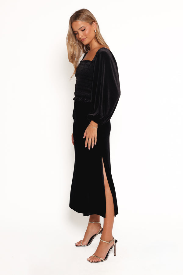 Raelynn Velvet Midi Skirt - Black