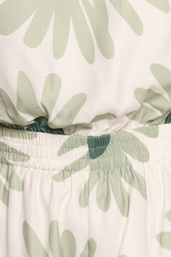 Effortlessly chic, the Sally Playsuit in Green Floral is your go-to for anything from sunny brunches to rooftop evenings. Featuring an elegant one-shoulder design and an asymmetrical neckline, it combines playful charm with modern style. The elasticized waistband ensures a flattering fit, while the functional pocket adds a touch of practicality.