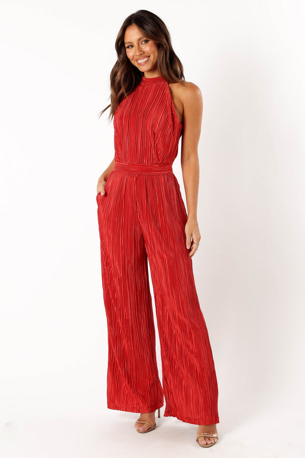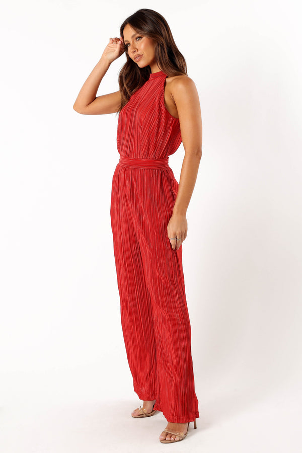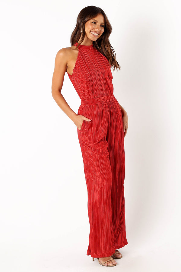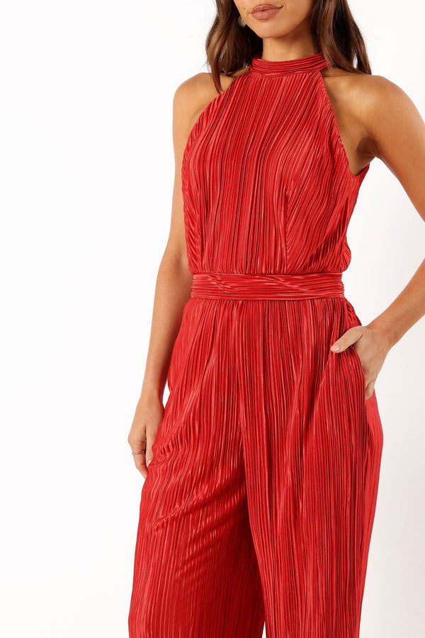 Teddie Plisse Jumpsuit - Red