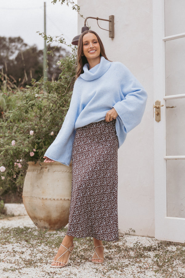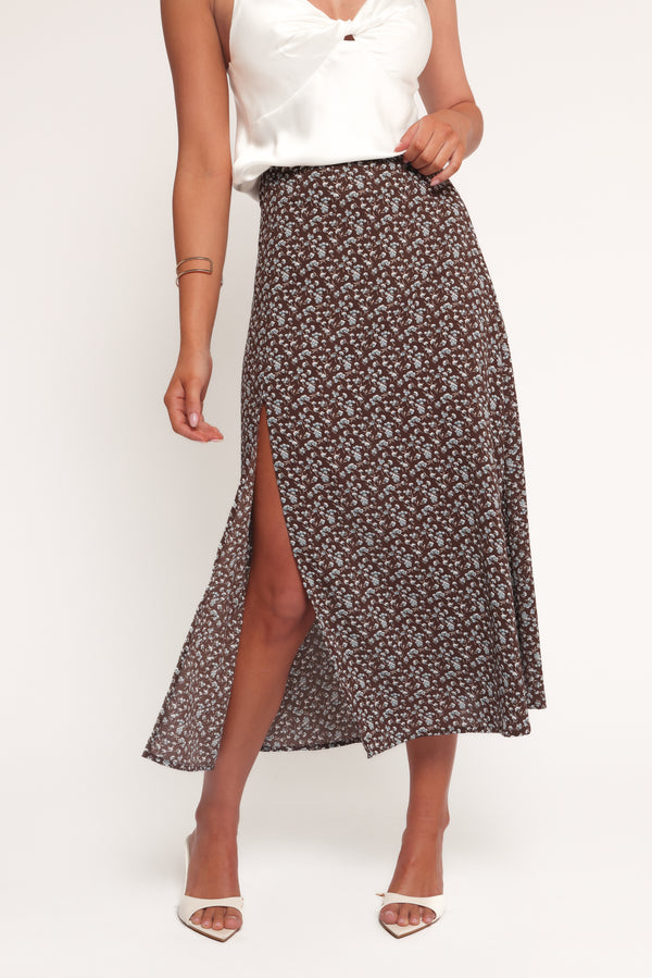 Willow Midi Skirt - Brown Blue Floral