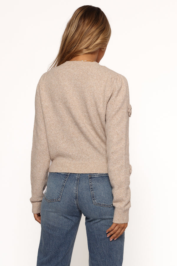 Wynne All Over Flower Knit Sweater - Light Taupe